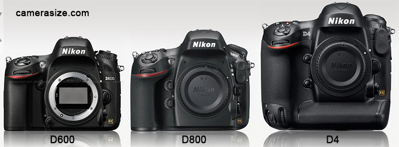 You can also compare the D600 vs D800 vs D4 on camera size website, as well as compare many other cameras side by side!